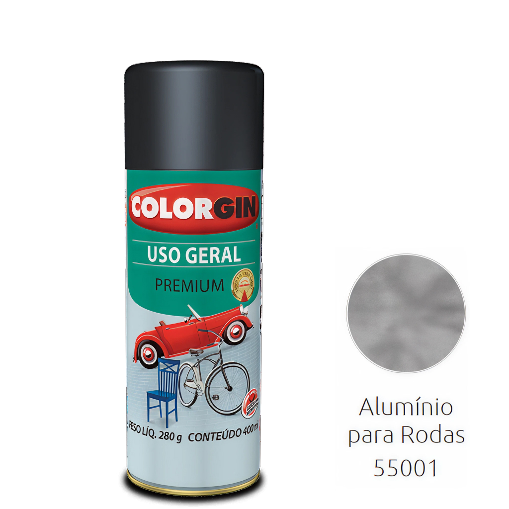 A Tinta Spray Uso Geral Metálica 55001 Alumínio Opalescente Roda Color Gin é indicada para pintura, reparos e personalização de rodas automotivas, peças metálicas e superfícies que necessitam de acabamento metálico resistente. Sua formulação garante excelente aderência, rápida secagem e durabilidade, proporcionando brilho e acabamento uniforme.