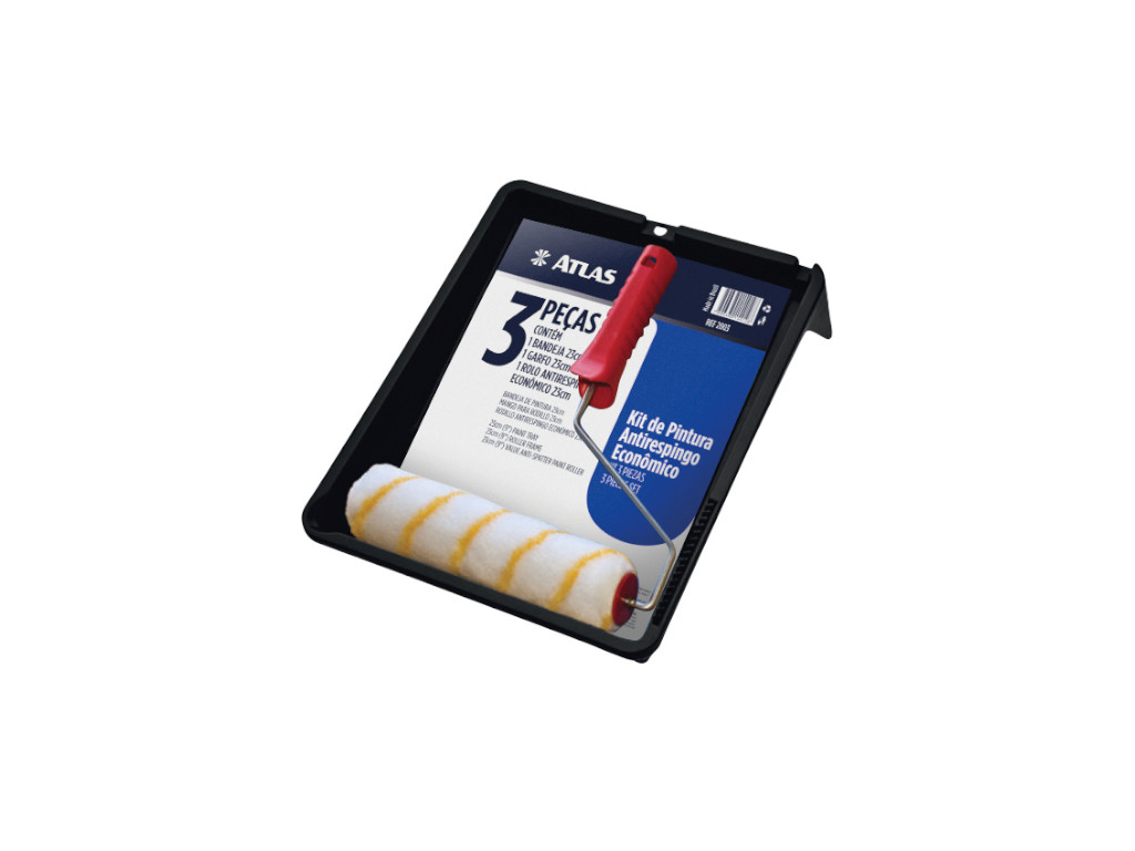 Kit com bandeja, rolo e estrutura antirrespingo: ideal para pintura sem respingos em ambientes internos.